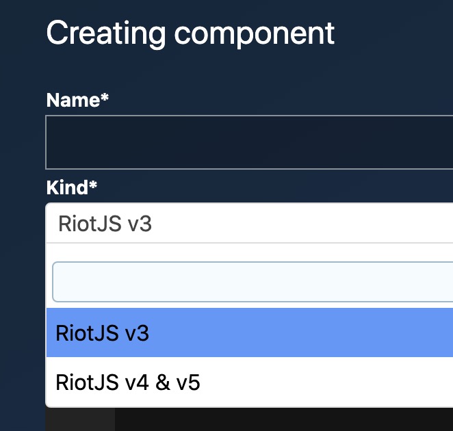 To create a new component using RiotJS v4 you just have to create a new component and select the right kind